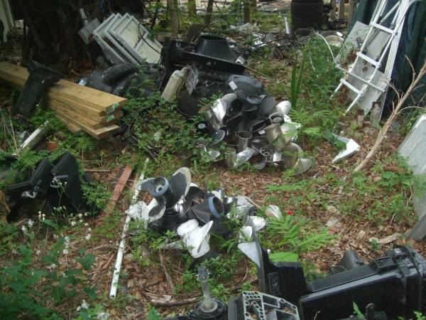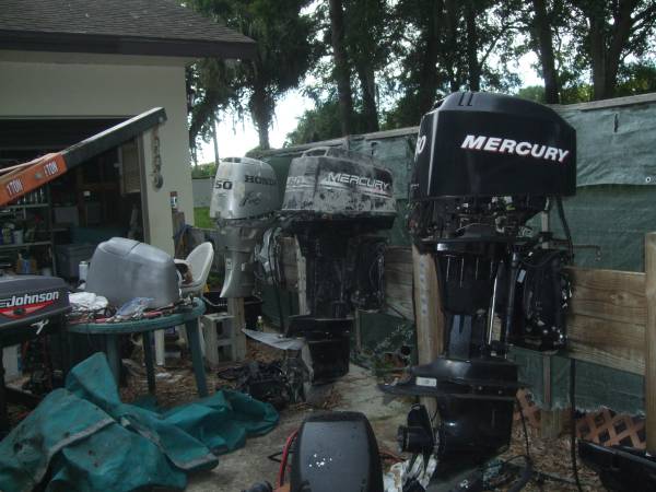 MERCURY MOSTLY BABY L3-L4 SOME NOT MUCH V6. YAMAHA 40HP-60HP LITTLE BIT OF SALTWATER 200HP. OMC MOSTLY 40HP-50HP 2 CYLINDER 2 STROKE. HONDA MOSTLY BF40-50 LATE 90'S -2006. 50 PLUS PROPS MANY MID SECTIONS AND TRANSOM BRACKETS SOME LOWER UNITS A FEW GOOD POWERHEADS A FEW PARTS POWERHEADS MANY STARTERS TO REBUILD A FEW LOWER UNITS TO REBUILD MANY PONTOON TRAILER TIRES SO SO AND RIMS. BINNACLES OMC TOP AND SIDE MERC TOP MOUNTS HONDA TOP AND SIDE YAMAHA DUAL TOP MAYBE ONE SIDE MOUNT