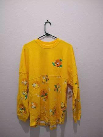 This is a Disney Orange Bird Spirit Jersey from the EPCOT Flower & Garden Festival. It is size medium. The color is yellowish orange with orange birds on the bottom half and on the top left. The back says "The Original Florida Orange Bird". 100% cotton. It has long sleeves - the sleeves measure approximately 18" from the armpit to the cuff. The shirt measures approximately 27 1/2" from the top of the front collar to the bottom. The sweatshirt is brand new and still has the original tag on it! It is a gift that has never even been worn. The pictures are of the actual sweatshirt you will receive. The sweatshirt comes from a smoke free and pet free home. I will meet in person in at the Polk County Sheriff’s Northeast Substation off 27 only, or for an extra $10, I will accept a PayPal payment and mail the shirt.