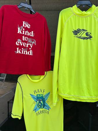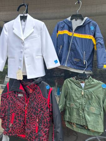 Various Children clothes. Many different pieces available, pictured are some examples. Prices vary and are listed on blue stickers. Cash and carry only. No Cash App, No Holds. Pickup only.
