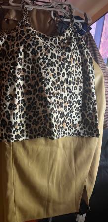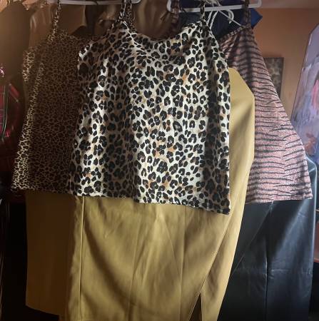 New Beige Leather Skirt Size Small $25 New Sleeveless Shirt 2X they run Small Call or text Cash Only