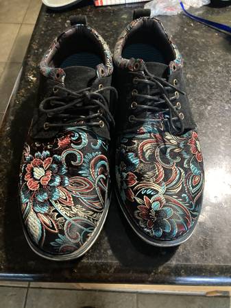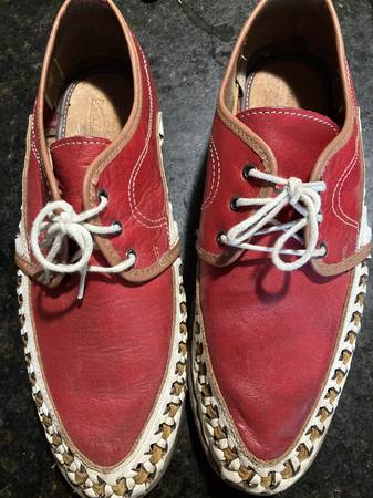Handmade leather shoes (Red) Made in Mexico $25. cost $60 new Paisley dress shoes. $30 Cost $70 new Both size 9.5 Both worn once. I need to wear orthodontic shoes now.