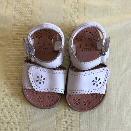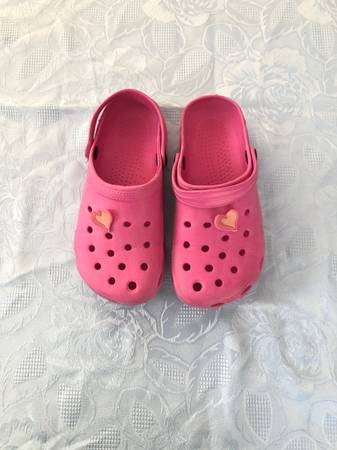 Shoes $3 per pair TKS White Sandals with flower - size 5 (toddler) Velcro closure and Velcro width adjustment Pink Clogs - size 9/10 (girl) Circo Blue Flip-Flops with colored stones - size 11 Bright...