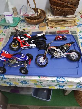 Hot wheels motorcycles . 9 pieces in original packaging .$2 each or all for$15 . new condition . plus four motorcycle models . $5 each or all items in ad for $20. Cash only . If posted it's still available . ** No emails or texts **. Landline only ** . No calls after 9 pm . Phone off hook from 2 to 4 PM . 4 zero 7 - 696 - zero 7 6 9 .