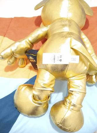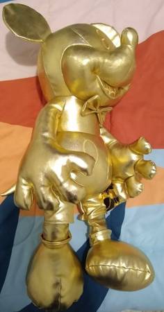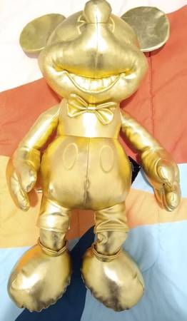 This is an official Disney Mickey Mouse 90th Anniversary gold plush! It measures approximately 26 inches tall and weight close to two pounds. This is a large, nice plush that would make a unique addition to any Disney collection! There are no marks or blemishes on the plush. It even still has the price tag! The pictures are of the actual item you will receive, and it comes from a smoke free and pet free home. I will meet in person in at the Polk County Sheriffs Northeast Substation off 27 only, or for an extra $30, I will accept a PayPal payment and mail the Mickey.