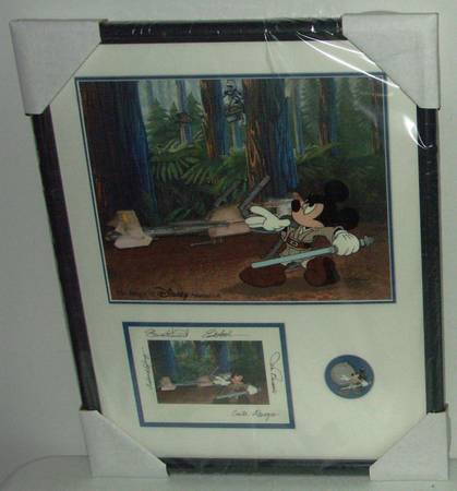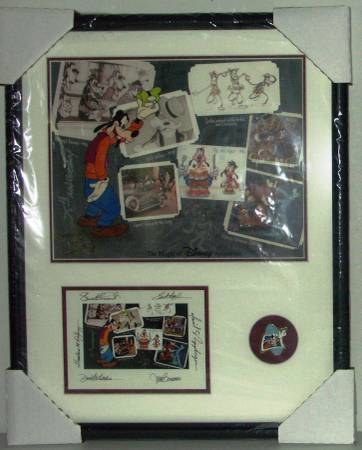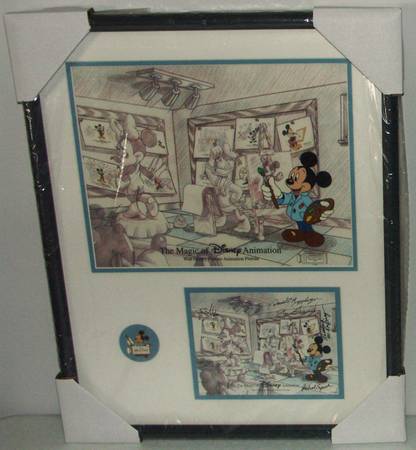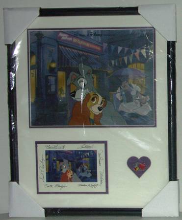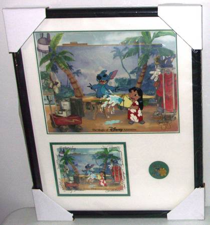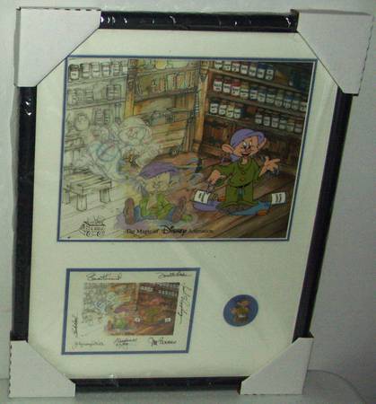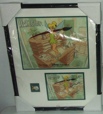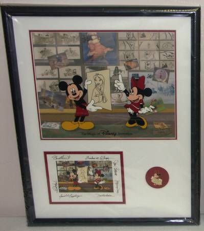 The Ink and Paint cels I have for sale are 12 / 3- way mounted configurations and 1 / Single by Disney. The frames are wooden frames with black finishing, they include the hand painted cel, post card of the cel signed by the artists, and