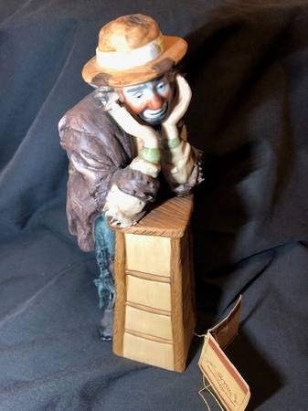 Emmett Kelly Jr-Figurine. This piece is part of the Emmett Kelly Jr-Figurine Collection, Exclusively by Flambro. Height: 8 1/2 in