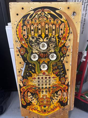 Used KISS playfield from 1978. Has damage. Has been basically stripped. Great Wall art for someone.