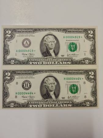 UNIQUE 2 - TWO DOLLAR STAR FEDERAL RESERVE NOTES 2003 UNCIRCULATE, CLEAN, CRISP LOW SERIAL NUMBERS