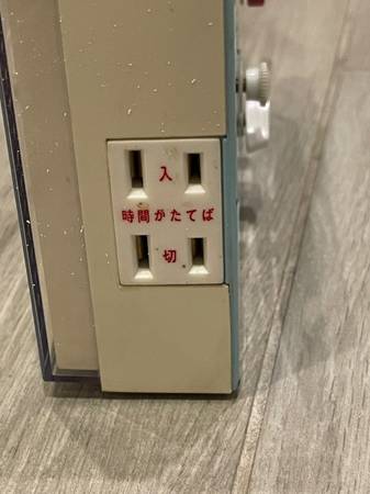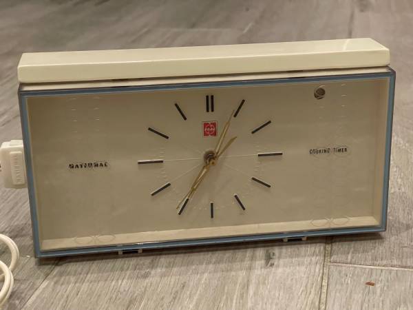 This is a vintage mechanical wind-up clock/cooking timer. It is unique because the clock is mechanical but that controls the electric appliance plugged in to. it. If you attach the removable power plug on the left side you can plug in an electric appliance on the right side. There are two power outlets. One will supply power until the alarm function of the clock is triggered then it will shut off the power. The second outlet is the reverse. No power will flow through that outlet until the alarm is triggered.