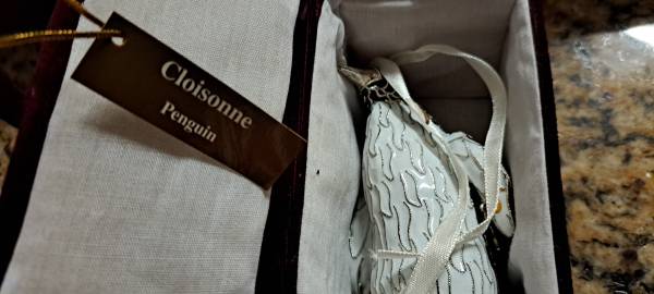 Third: Two Cloisonne ornaments - 1 is a penguin, 1 is a frog. very colorful and looks great on a xmas tree. Both cost 30 bucks new, but I am willing to sell both of them for a price of $10 each.