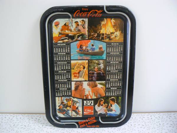 Coca-Cola Vintage 1981 Coca Cola Metal Serving Tray Calendar.1981 Enjoy Coca-Cola "Have a Coke and a smile metal tray. Decent usable condition. 17 1/2" L x 13" W