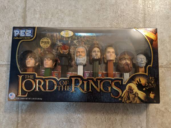 Selling a Lord of the Rings PEZ Collector's Series, Walmart Exclusive. Includes Frodo, Sam, the Eye of Sauron, Gandalf, Aragorn, Legolas, Gimli, and Gollum, along with the PEZ. Asking $10.