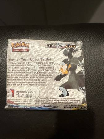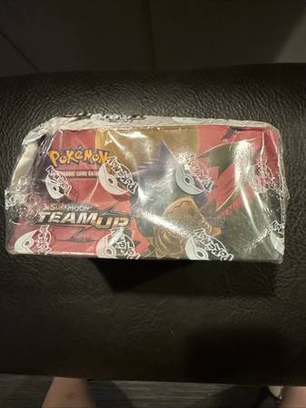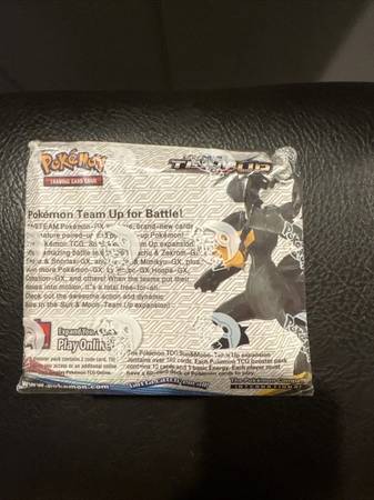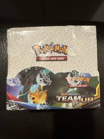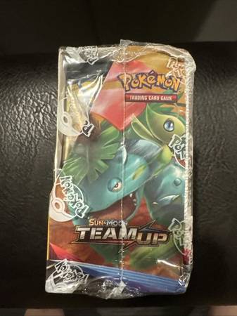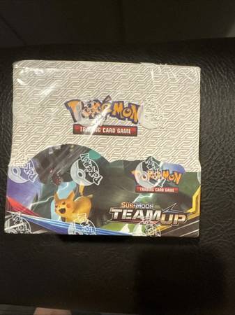 The Pokemon Sun & Moon Team Up Booster Box is a collectible item containing sealed trading card boxes from the popular franchise created by Nintendo. This specific box is from the Team Up set released in 2019, making it a sought-after item for collectors and fans of the Pokemon universe. While the box may be damaged or bent, the content inside is still sealed and can provide hours of entertainment for fans looking to add to their collection of non-sport trading cards.