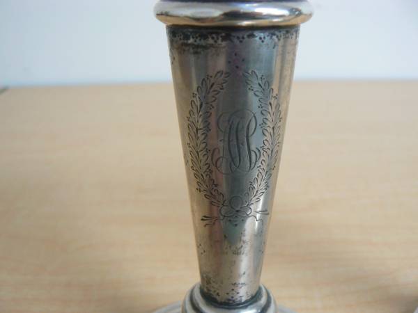 These candlesticks are not weighted, the pitch has been removed. They weigh 237 grams total. Pair of high end Goodnow and Jenks sterling silver candlesticks. Goodnow and Jenks were the principle suppliers of fine silver to Boston's upper crust from 1893 through 1905. Both sticks are clearly marked. Marked on the underside. Goodnow and Jenks ( G turtle J)Sterling, retailed by Smith Patterson, company, # 53. They have not been polished. The pair have some wear and small dents,