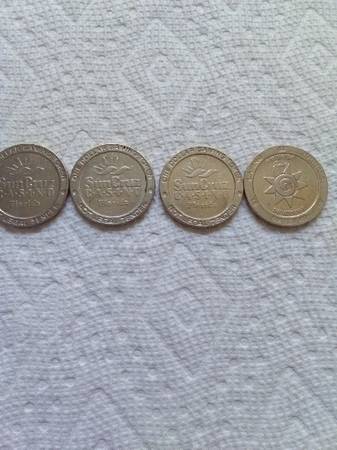 4 SLOT MACHINE TOKENS FROM THE OLD SUN CRUZ CASINO SHIP THAT USED TO SAIL OUT OF PORT CANAVERAL, FLORIDA. THEY FEEL HEAVY, AND THEY SAY $1.