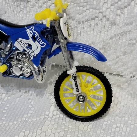 Exciting blue and yellow toy motorcycle for kids. Perfect for imaginative play and adventure. Original decals intact. No box. Please look at pictures for details and condition as this is the exact...