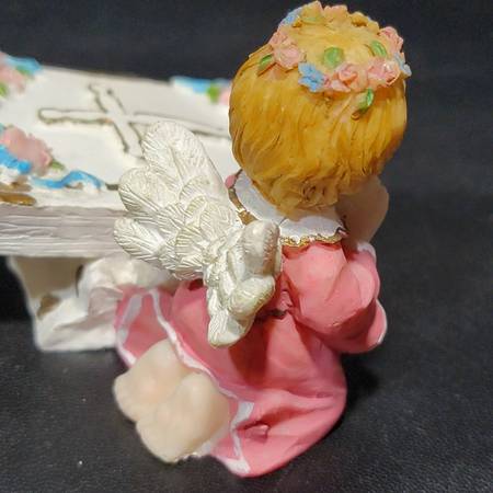Charming angel figurine in a pink dress with an embossed cross prayer book. Measures ~ 3.5" W x 2.25" L x 2.25" H Please look at pictures for details and condition as this is the exact item you will...