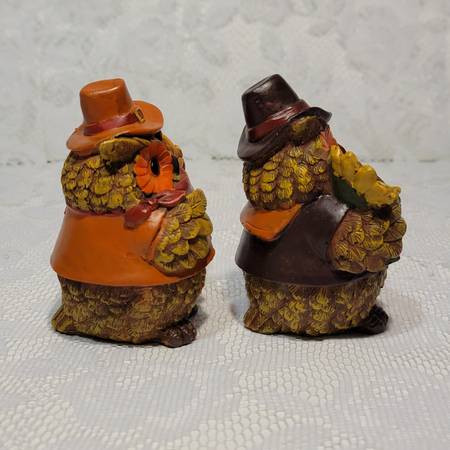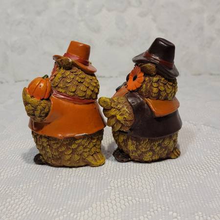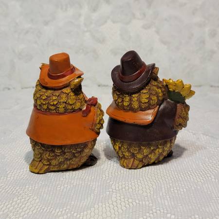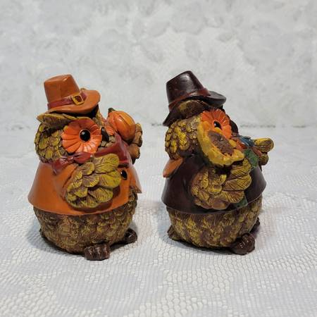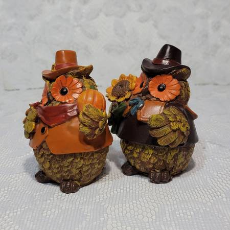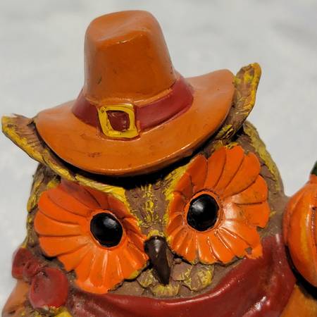 Vintage Thanksgiving Pilgrim Adorable Owl Figurines with Pumpkin and...