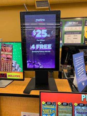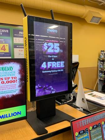 Other Ads might be playing on the screen but only the Metro by T-Mobile Ad is needed. The Ad rotates about every 2-4 minutes so please stick around and wait for it to play. The Ad is in English and Spanish and BOTH languages are needed in photos.