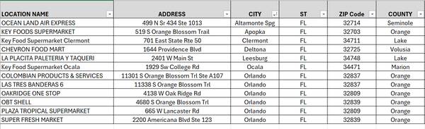Need (4) total locations from the attached list. Any locations from the list will work.