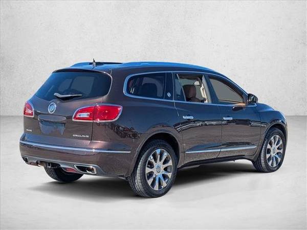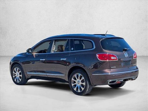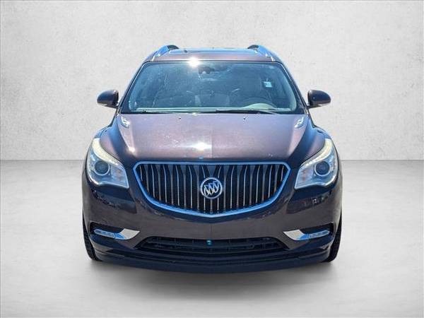 * Experience Buick Package * Moonroof; Power * Audio System; Color Touch Navigation Radio With Intellilink And Rear Seat Entertainment; AM/FM/SiriusXM Radio With CD/Dvd Player * Enclave Tuscan Edition * Trailering Package * Sun/Moonroof * Leather Seats * Navigation System * 3rd Row Seat * Dark Chocolate Metallic * Cooled Front Seat(S) * License Plate Bracket; Front Mounting Package * 1Sn Preferred Equipment Group * Audio System Feature; Bose Advanced 10-Speaker System With 5.1 Surround Sound * Choccachino; Perforated Leather Seating Surface * Cooling System; Heavy-Duty * Emissions; Federal Requirements * Engine; 3.6L Variable Valve Timing V6 With Sidi (Spark Ignition Direct Injection); Dohc * Grille; Bronze-Toned * Power Outlet; 3-Prong Household-Style; 120-Volt * Rear Seat Entertainment System; Rear Seat Dvd Player * Seating; 7-Passenger; Front Bucket * Tires; P255/55R20 All-Season; Blackwall * Trailer Hitch * Transmission; 6- Speed Automatic; Electronically Controlled With Overdrive * Wheels; 20" (50.8 Cm) Chrome-Clad Cast Aluminum With Bronze AccentsThis vehicle includes a Money-Back Guarantee* and passed our precise inspection process. Best of all the price you see is the price you pay. No haggling. No back and forth. No pressure. And this price is so good it is guaranteed. *Money-Back Guarantee is valid for 5 days or 250 miles, whichever comes first. Subject to certain terms and conditions. See store for details. Some restrictions apply.