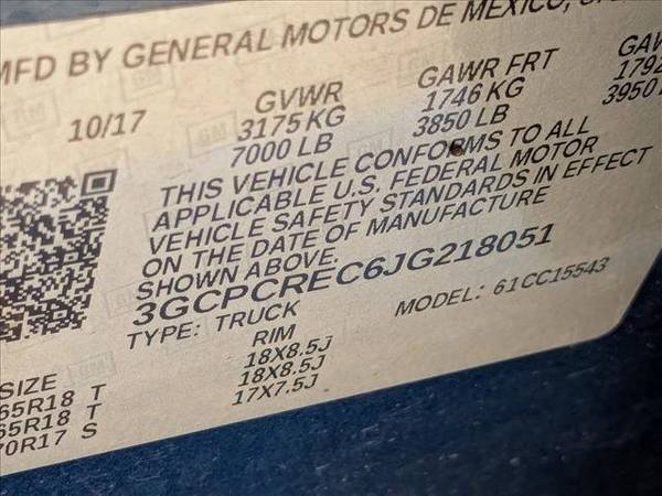 * All Star Edition * Engine; 5.3L Ecotec3 V8 With Active Fuel Management; Direct Injection And Variable Valve Timing * Seats; Front 40/20/40 Split-Bench; 3-Passenger; Available In Cloth Or Leather * Trailering Package * Deep Ocean Blue Metallic * Differential; Heavy-Duty Locking Rear * Wheels; 18" X 8.5" (45.7 Cm X 21.6 Cm) Bright-Machined Aluminum * Seat Adjuster; Driver 10-Way Power * Remote Vehicle Starter System * Defogger; Rear-Window Electric * Fog Lamps; Thin Profile Led * Power Outlet; 110-Volt Ac * Steering Column; Manual Tilt And Telescoping * Air Conditioning; Dual-Zone Automatic Climate Control * Audio System; Chevrolet Mylink Radio With 8" Diagonal Color Touch-Screen; AM/FM Stereo * Cooling; Auxiliary External Transmission Oil Cooler * Emissions; Federal Requirements * Gvwr; 7000 Lbs. (3175 Kg) * Jet Black; Cloth Seat Trim * Lt Preferred Equipment Group * Paint; Solid * Rear Axle; 3.42 Ratio * Theft-Deterrent System; Unauthorized Entry * Tire; Spare P265/70R17 All-Season; Blackwall * Tires; P265/65R18 All-Season; Blackwall * Transmission; 6-Speed Automatic; Electronically ControlledThis vehicle includes a Money-Back Guarantee* and passed our precise inspection process. Best of all the price you see is the price you pay. No haggling. No back and forth. No pressure. And this price is so good it is guaranteed. *Money-Back Guarantee is valid for 5 days or 250 miles, whichever comes first. Subject to certain terms and conditions. See store for details. Some restrictions apply.2018 Chevrolet Silverado 1500 LT AutoNation Chevrolet West Colonial Call us today at 407-295-7000 to schedule your appointment (walk-ins are always welcome)! The 2018 Chevrolet Silverado 1500 LT delivers strong performance, modern tech, and proven capability in a full-size pickup. Highlights: Powerful V8 engine options with excellent towing capacity Crew Cab comfort with spacious seating Chevrolet Infotainment system with touchscreen, Apple CarPlay & Android Auto Keyless entry, power accessories & rearview camera Alloy wheels & chrome exterior accents Every vehicle at AutoNation Chevrolet West Colonial gets a rigorous inspection and comes with our 5-Day / 250-Mile Money Back Guarantee . Every used vehicle tells its own story, which might include a few blemishes. By not fixing every cosmetic blemish, we're able to pass lower prices to you. Dont waitcall 407-295-7000 to schedule your appointment today, or stop by, walk-ins are welcome!