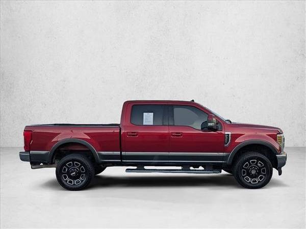 * Wheels: 20" Bright Machined Cast Aluminum * Ultimate Trailer Tow Camera System * 6" Angular Chrome Step Bar * 5Th Wheel/Gooseneck Hitch Prep Package * Leather Seats * Lower Accent Two-Tone Paint * Ruby Red Metallic Tinted Clearcoat * Gooseneck Hitch Kit (Pre-Installed) * 3.73 Axle Ratio * Black; Front Leather Seating Surfaces 40/Console/40 * Engine: 6.2L 2-Valve Sohc Efi Na V8 Flex-Fuel * Order Code 618A * Tires: Lt275/65Rx20E Owl A/T (4) * Transmission: Torqshift 6-Speed Automatic (6R140)This vehicle includes a Money-Back Guarantee* and passed our precise inspection process. Best of all the price you see is the price you pay. No haggling. No back and forth. No pressure. And this price is so good it is guaranteed. *Money-Back Guarantee is valid for 5 days or 250 miles, whichever comes first. Subject to certain terms and conditions. See store for details. Some restrictions apply.****ONLY AVAILABLE AT AUTONATION FORD SANFORD**** AutoNation Ford Sanford is pleased to be currently offering this 2019 Ford Super Duty F-350 SRW LARIAT with 144,041mi. This Ford includes: ENGINE: 6.2L 2-VALVE SOHC EFI NA V8 FLEX-FUEL (E85) Flex Fuel Capability 8 Cylinder Engine *Note - For third party subscriptions or services, please contact the dealer for more information.* Opulent refinements married with exceptional engineering make this the kind of car you'll want to own for a lifetime. This Ford Super Duty F-350 SRW LARIAT comes equipped with 4 wheel drive, which means no limitations as to how or where you can drive. Different terrains and varying weather conditions will have no effect as to how this vehicle performs. Marked by excellent quality and features with unmistakable refined leather interior that added value and class to the Ford Super Duty F-350 SRW LARIAT.