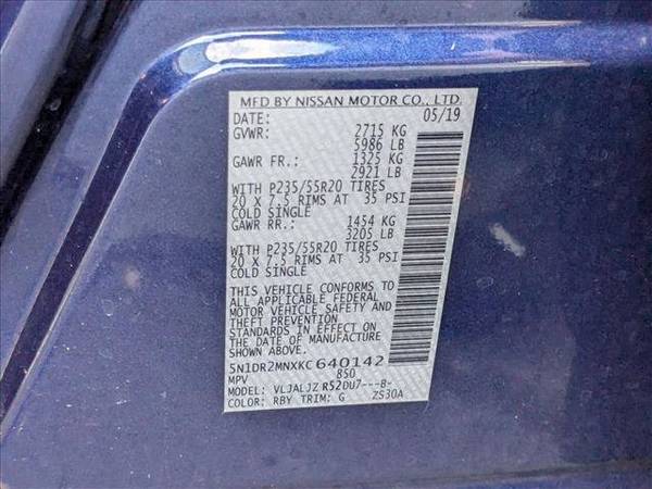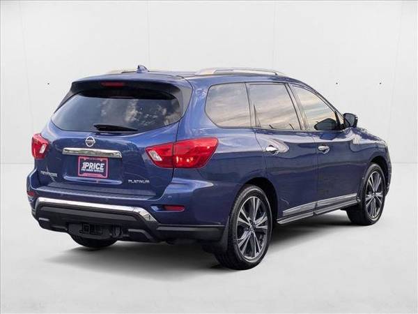 * Panoramic Roof * Leather Seats * Navigation System * 3rd Row Seat * [N93] Welcome Lighting * [L92] Carpeted Floor Mats (4-Pc Set) * [B95] Rear Bumper Protector * [B10] Black Mold-In-Color Splash Guards * Keyless Start * Rear Spoiler * Cooled Front Seat(S) * [C03] 50 State Emissions * Caspian Blue Metallic * Charcoal; Leather Seating SurfacesThis vehicle includes a Money-Back Guarantee* and passed our precise inspection process. Best of all the price you see is the price you pay. No haggling. No back and forth. No pressure. And this price is so good it is guaranteed. *Money-Back Guarantee is valid for 5 days or 250 miles, whichever comes first. Subject to certain terms and conditions. See store for details. Some restrictions apply.****ONLY AVAILABLE AT AUTONATION FORD SANFORD**** This 2019 Nissan Pathfinder Platinum is proudly offered by AutoNation Ford Sanford This SUV is a great example of beauty and brawn with classic styling and a workhorse power plant. For those who are ready to drive something more than just a car, this Nissan Pathfinder Platinum will appeal to their idea of luxury and refinement. You can finally stop searching... You've found the one you've been looking for. The Nissan Pathfinder Platinum will provide you with everything you have always wanted in a car -- Quality, Reliability, and Character.