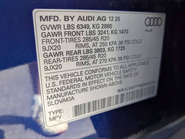 * Panoramic Roof * Galaxy Blue Metallic * Leather Seats * Navigation System * 3rd Row Seat * Keyless Start * Rear Spoiler * Black; Leather Seating SurfacesThis vehicle includes a Money-Back Guarantee* and passed our precise inspection process. Best of all the price you see is the price you pay. No haggling. No back and forth. No pressure. And this price is so good it is guaranteed. *Money-Back Guarantee is valid for 5 days or 250 miles, whichever comes first. Subject to certain terms and conditions. See store for details. Some restrictions apply.This 2021 Audi Q7 Premium Plus is offered to you for sale by Porsche of Orlando. On almost any road condition, this Audi Q7 Premium Plus offers solid performance, reliability, and comfort. Is it possible to fall in love with a vehicle? It is when your vehicle is as prestige as the Audi Q7. Take home this 2021 Audi Q7 Premium Plus and enjoy the safety and added performance of AWD. The Q7 Premium Plus is well maintained and has just 35,674mi. This low amount of miles makes this vehicle incomparable to the competition. Added comfort with contemporary style is the leather interior to heighten the quality and craftsmanship for the Audi Q7 Premium Plus. Rare is the vehicle that has been driven so gently and maintained so meticulously as this pre-owned beauty. You will never have to worry about keeping up with traffic in this Audi Q7 Premium Plus as it packs a beast under the hood. You demand the best in everything, so why would your automobile be any different? Enjoy the best features available in this stunning Audi Q7. Let's be honest, not everyone wants to set a course blindly into the dark. For those of us that don't, there are vehicles like this with stellar navigation systems.
