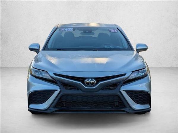 The following items have been reconditioned on this vehicle: new brakes and all new tires! * Lane Keeping Assist * Rear Spoiler * 50 State Emissions * Black; Fabric Seat Trim W/Sport Softex * Celestial Silver MetallicThis vehicle includes a Money-Back Guarantee* and passed our precise inspection process. Best of all the price you see is the price you pay. No haggling. No back and forth. No pressure. And this price is so good it is guaranteed. *Money-Back Guarantee is valid for 5 days or 250 miles, whichever comes first. Subject to certain terms and conditions. See store for details. Some restrictions apply.****ONLY AVAILABLE AT AUTONATION FORD SANFORD**** AutoNation Ford Sanford has a wide selection of exceptional pre-owned vehicles to choose from, including this 2021 Toyota Camry. Start enjoying more time in your new ride and less time at the gas station with this 2021 Toyota Camry. Just what you've been looking for. With quality in mind, this vehicle is the perfect addition to take home. You can finally stop searching... You've found the one you've been looking for. Based on the superb condition of this vehicle, along with the options and color, this Toyota Camry SE is sure to sell fast.