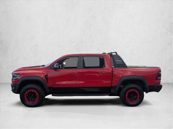 * Trx Level 2 Equipment Group * Mopar Rambar * Harman/Kardon 19 Speaker Premium Sound * Mopar Off-Road Style Running Boards * Blind Spot & Cross Path Detection * Leather Seats * Surround View Camera System * Navigation System * Parksense Front/Rear Park Assist W/Stop * Lower Two Tone Paint * Remote Start System * Keyless Start * Heads-Up Display * Cooled Front Seat(S) * Black; Leather Trimmed Bucket Seats * Diamond Black Crystal Pearlcoat * Engine: 6.2L Supercharged Hemi V8 Srt * Flame Red Clearcoat * Front License Plate Bracket * Transmission: 8-Speed Automatic (8Hp95) * Wheels: 18" X 9" Black Paint/Polish AluminumThis vehicle includes a Money-Back Guarantee* and passed our precise inspection process. Best of all the price you see is the price you pay. No haggling. No back and forth. No pressure. And this price is so good it is guaranteed. *Money-Back Guarantee is valid for 5 days or 250 miles, whichever comes first. Subject to certain terms and conditions. See store for details. Some restrictions apply.This 2022 Ram 1500 TRX is proudly offered by Audi South Orlando This Ram includes: ENGINE: 6.2L SUPERCHARGED HEMI V8 SRT (STD) Supercharged 8 Cylinder Engine Gasoline Fuel *Note - For third party subscriptions or services, please contact the dealer for more information.* You appreciate the finer things in life, the vehicle you drive should not be the exception. Style, performance, sophistication is in a class of its own with this stunning Ram 1500 TRX. Handle any terrain with ease thanks to this grippy 4WD. Whether you're on a slick pavement or exploring the back country, you'll be able to do it with confidence. If, upon choosing the road less traveled you find yourself lost, relax and remember this beautiful car has navigation. If not for a few miles on the odometer you would be hard-pressed to know this 2022 Ram 1500 is a pre-owned vehicle. Stupendously fast, yet subtle at the same time, this Ram 1500 TRX sets the bar high. A true automotive masterpiece, this Ram can function on track-day or work-day, and will always get you to your destination very quick. This Ram is equipped with some of the most amazing wheels the market has to offer! Once you take this Ram 1500 TRX for a test drive, you'll immediately realize how much of an added bonus this vehicle's upgraded wheels will provide.