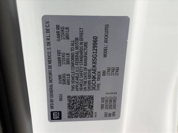 * Navigation System * Lane Keeping Assist * Keyless Start * Audio System; Chevrolet Infotainment 3 System * Emissions; Federal Requirements * Engine; Turbomax * Jet Black; Vinyl Seat Trim * Rear Axle; 3.42 Ratio * Seats; Front 40/20/40 Split-Bench * Summit White * Tire; Spare 255/70R17 All-Season; Blackwall * Tires; 255/70R17 All-Season; Blackwall * Transmission; 8-Speed Automatic; Electronically Controlled * Wheels; 17" X 8" (43.2 Cm X 20.3 Cm) Ultra Silver Painted Steel * Work Truck Preferred Equipment GroupThis vehicle includes a Money-Back Guarantee* and passed our precise inspection process. Best of all the price you see is the price you pay. No haggling. No back and forth. No pressure. And this price is so good it is guaranteed. *Money-Back Guarantee is valid for 5 days or 250 miles, whichever comes first. Subject to certain terms and conditions. See store for details. Some restrictions apply.This Chevrolet includes: ENGINE, 2.7L TURBOMAX 4 Cylinder Engine Gasoline Fuel Turbocharged WHEELS, 17 Steel Wheels SUMMIT WHITE JET BLACK, VINYL SEAT TRIM Vinyl Seats REAR AXLE, 3.42 RATIO TRANSMISSION, 8-SPEED AUTOMATIC, ELECTRONICALLY CONTROLLED 8-Speed A/T A/T *Note - For third party subscriptions or services, please contact the dealer for more information.* You deserve a vehicle designed for higher expectations. This Chevrolet Silverado 1500 Work Truck delivers with a luxurious, well-appointed interior and world-class engineering. Handle any terrain with ease thanks to this grippy 4WD. Whether you're on a slick pavement or exploring the back country, you'll be able to do it with confidence. Look no further, you have found exactly what you've been looking for.