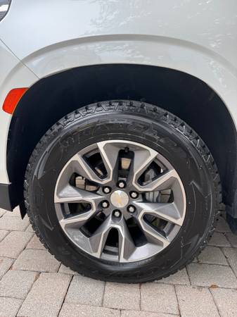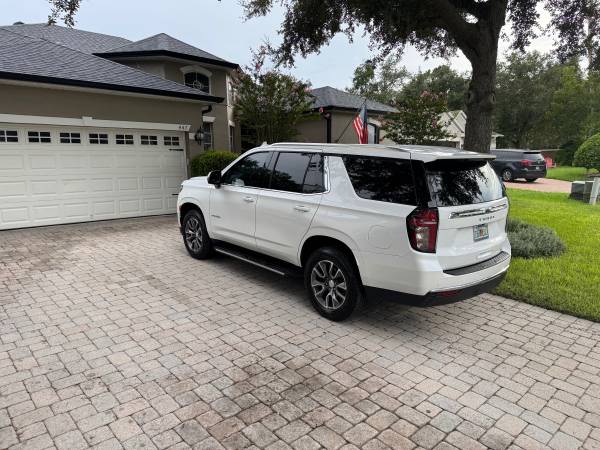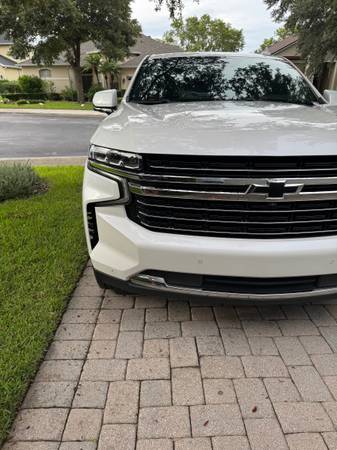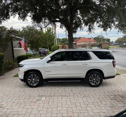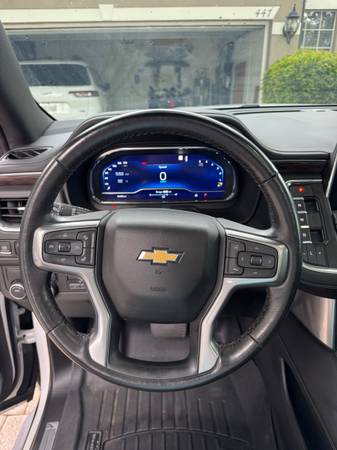 !Clean Carfax! One Owner garage kept 2022 Chevy Tahoe in Iridescent Pearl White Tricoat Exterior and Black Interior.