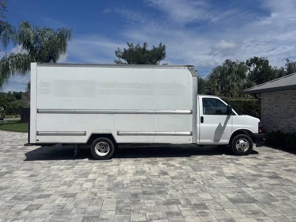 Two 16 ft box trucks for sale one orange 2019 with 95,000 miles 15,500 one white 2020 with 96,000 miles 16,500 Both v8 6.0 engines