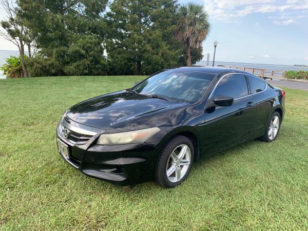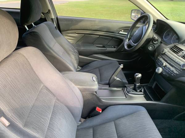 2012 Honda Accord, black, 2-Door, 5-Speed (manual shift) 2.4L Engine. “Kelly Blue Book Value: $5,600.”
