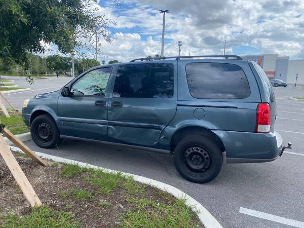2006 Chevy Uplander Van. Running smooth. High mileage but this van will not die!! Needs brakes done ( still stops) but will need to fix eventually because the light is on. Ice cold air! Was used to move furniture. Seats removed and rubber flooring was put down. You can practically live in the back because of the flooring! There are dents on the side, the top has major fading from the sun and there are cosmetic problems. Clean title. 229,000 miles. Newer battery and alternator. First 2000 takes it! Being sold as is! Not that pretty but runs! Please email with contact number and I will respond! Serious buyers only!