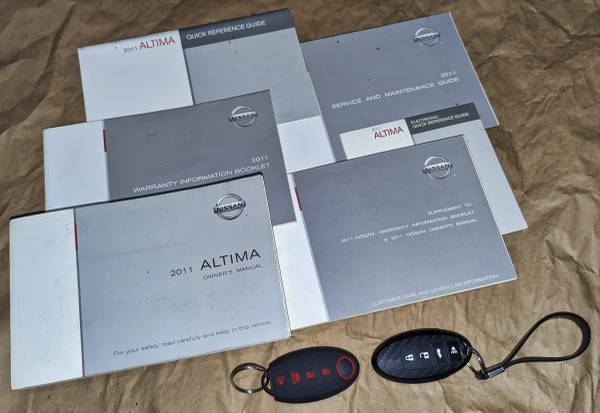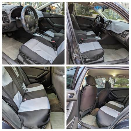 2011 Nissan Altima 2.5S for sale. Clean car inside and out, garaged by current owner, wireless Apple CarPlay and Android Auto, remote start, backup camera with parking assist guidelines, push button start, bluetooth, strong engine, responsive gas and break pedals, smooth transmission, drives great, cold AC/strong heat, fold down rear seats, cruise control, power windows, tinted windows with front sun strip, alarm system, stability control system, dual (front and back) dash camera, spare tire, water beading / rain-repelling / hydrophobic coating on exterior. Excellent shape with no paint or clearcoat fading/oxidization. Attractive dark grey exterior with dark grey interior. 2 key fobs, and owner's manual/maintenance guide/etc. Current owner is a non-smoker, no pets, no kids. Car has rubber floor mats over carpet and spill-resistant front seat covers for clean seats. 196k miles. No loan/lien, ready for normal private as-is sale and title transfer with no dealer fee.
