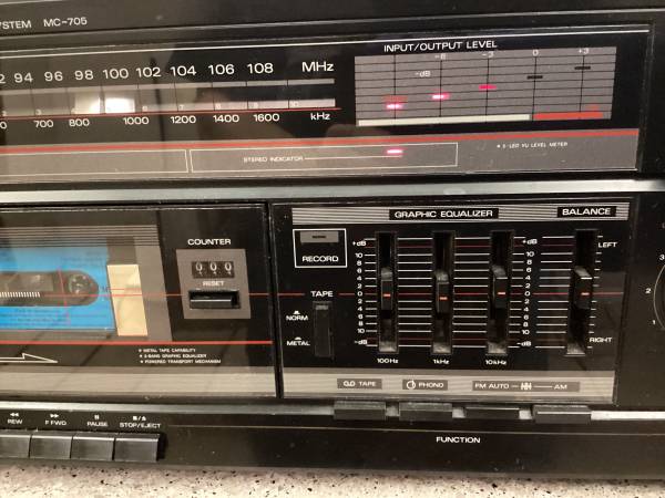 Vintage Rare 1980 Fisher Audio Component System MC-705 with Graphic Equalizer and Input/Output Sound Level Graphics. This system has AM/FM Stereo and Turntable with New Belt and Needle in Excellent Condition, the Cassette Tape needs a belt replaced. This System looks great as well and for Sale for ONLY $50.00. If interested, please call show contact info