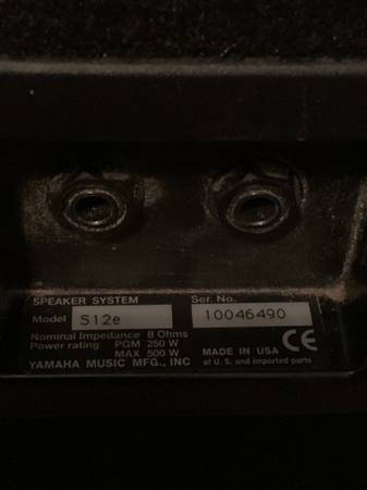 Vintage Yamaha Unpowered Floor Speaker S12e (Rods on Side for Hanging) 2-Way, a 12” Woofer with Power at 250 > 500 Max Watts at 8 Ohms for Sale for ONLY $60.00. If interested, please call show contact info