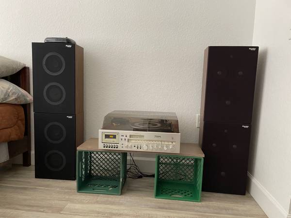 Selling an old Panasonic compact Stereo with simulated wood on the sides. Includes 4 Thruster Speakers, operating instructions and still works. Make me an offer.