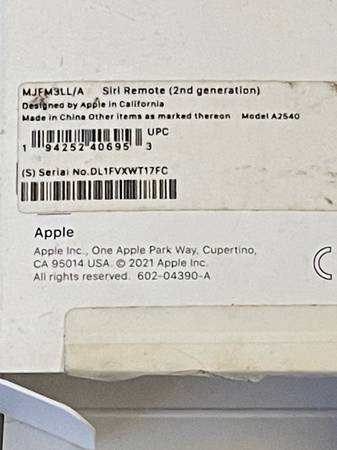 New Apple A2540 Wireless Silver Digital Siri Remote Control