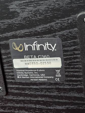 Selling my complete Infinity Beta Series 5.0 Speaker System. This is a premium, highly-regarded 5-channel set known for its clear, detailed sound, excellent dialogue clarity, and audiophile-grade performance. This system is perfect for a serious home theater setup.