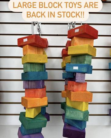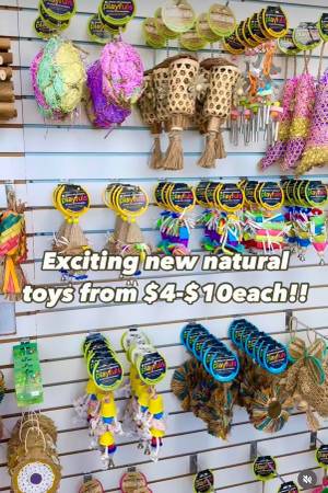 We have hundreds of bird toys. (Super Bird Creations, A E, Bonka, Playtime, Hagen, Pennplax, Planet Pleasures, JW, King Cage, Bird Delights, Fancy Feathers, Prevue Hendryx, Polly's, Zoo-Max)