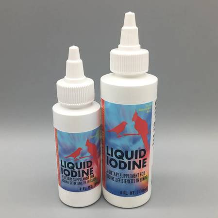 Iodine for birds 2 oz. $6 and 4 oz. $11.
