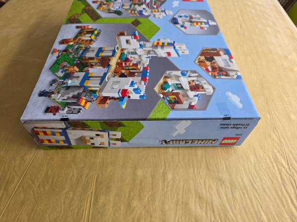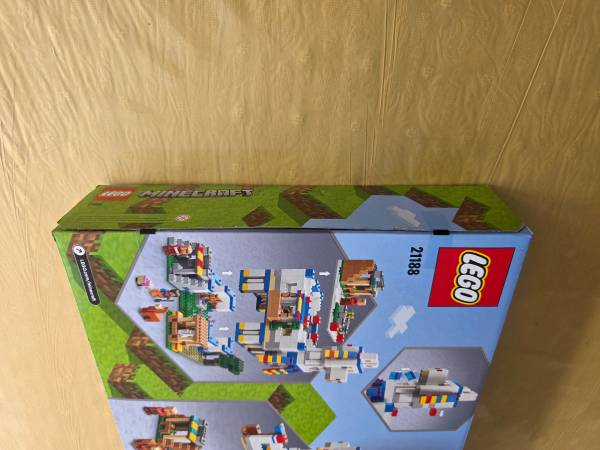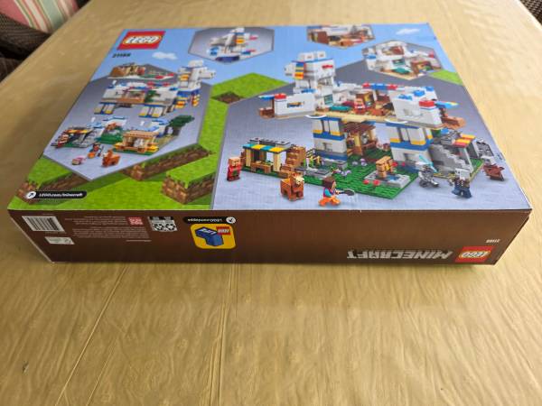 Includes LEGO Minecraft figures: a savannah villager, a blacksmith, a raider and a vindicator, plus an axe, crossbow & sword accessories