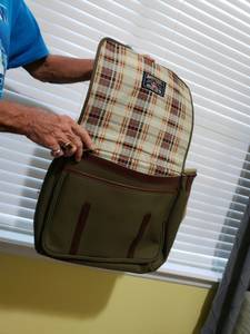 Never been used. Large and several compartments. Has leather as well. Fully lined