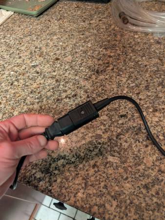 - I cut the original cord and added a C13 (D plug, pc connector) so it was easier to unplug and move. Includes a power cord but it can be easily replaced with a longer one.