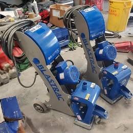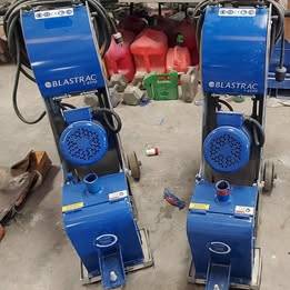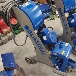 The Blastrac 1-8DM is a portable, lightweight shot blasting system that runs on single phase common power and is perfect for smaller jobs such as residential garage floors, pool decks and small industrial floors. The machine is pushed forward with manual travel speed and has an 8.75 inch blast pattern making it capable of reaching corners and small spaces.