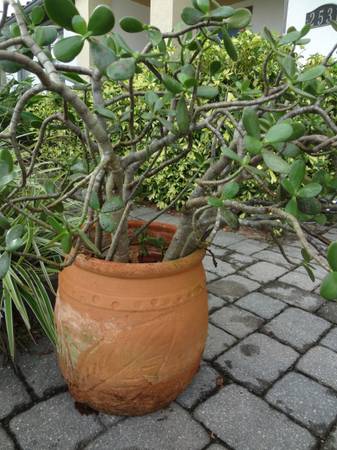 Beautifull Crassula Ovata Sunset + Terracotta Jar Size : Terracotta Jar : 14 " Crassula + Jar : 3 Ft it takes years to grow this size Great home decor and bring you good feng shui. Very easy to...