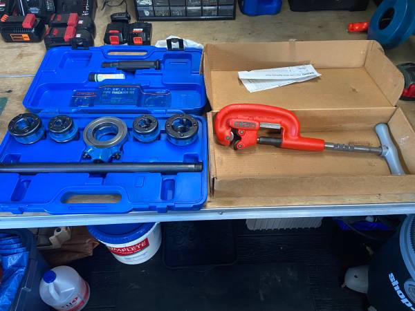Rigid pipe vice, rigid pipe cutter, and westward pipe threader kit 1/2 “ to 1 1/4 “ size Dia’s ! Assorted fittings, everything goes together, if wanted. Call or Text to get more info or Directions...